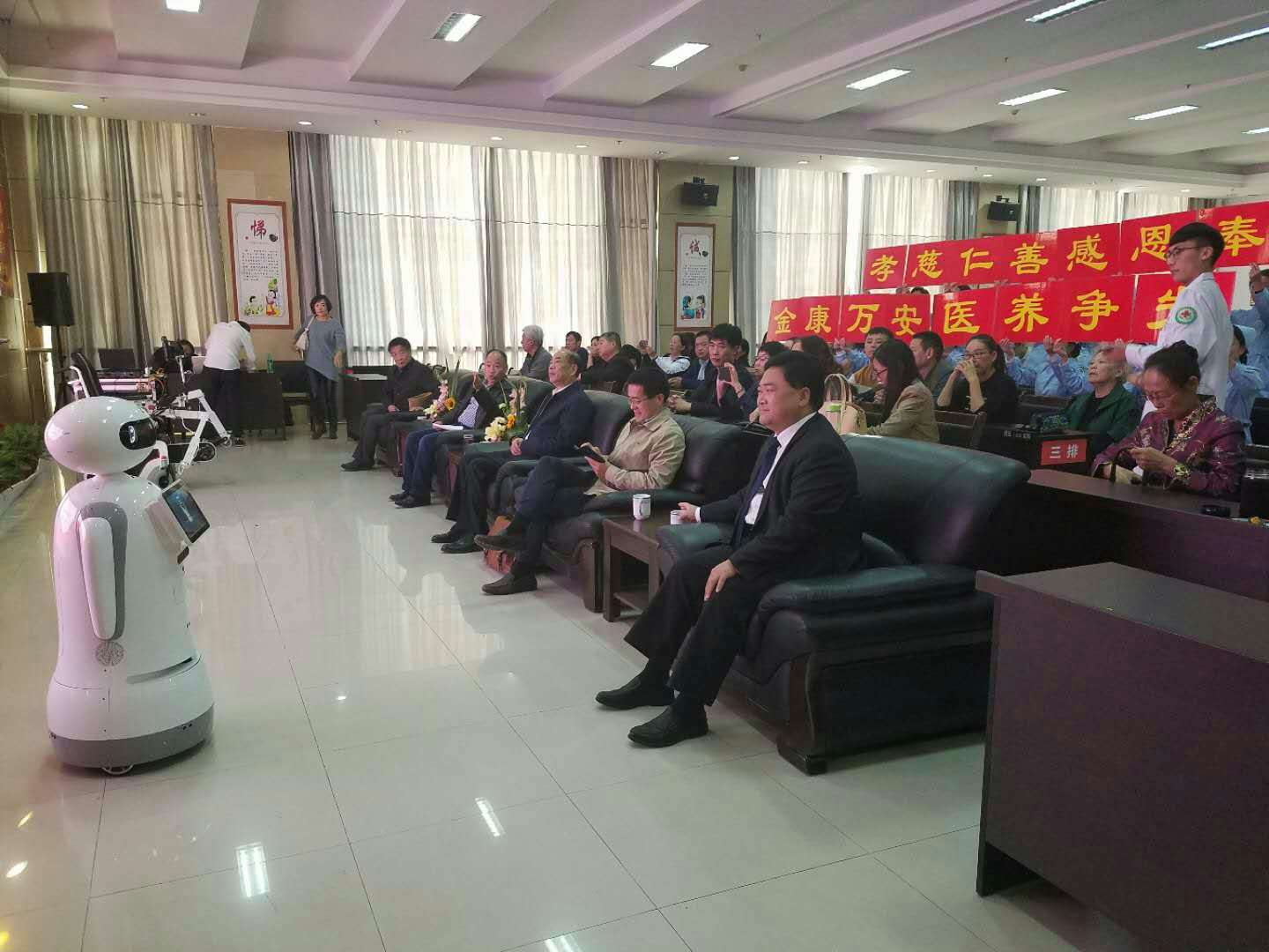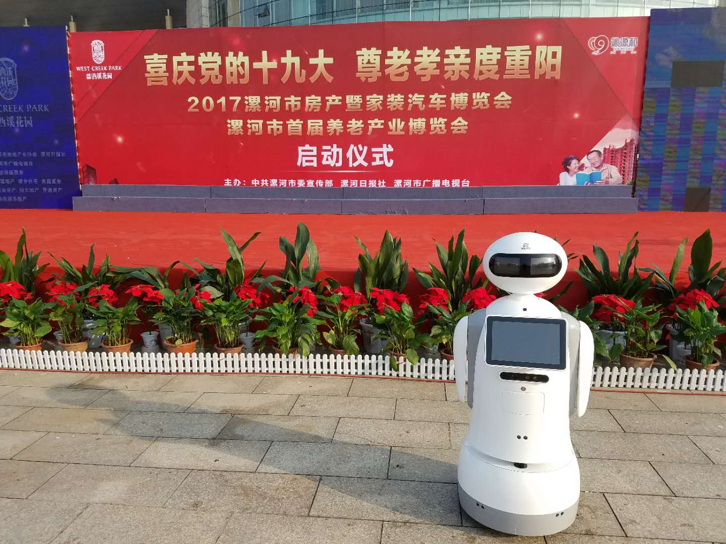 2017漯河市首屆孝老敬親度重陽養(yǎng)老產(chǎn)業(yè)博覽會暨房產(chǎn)家居汽車博覽會開幕式在市會展中心舉行,由北京理工華匯智能科技有限公司榮譽(yù)出品的智能機(jī)器人小匯,亮相開幕式,在其后舉行的“金康 .萬安”杯老齡產(chǎn)業(yè)論壇上,作為論壇司儀的小匯更是深受各界人士的喜愛。